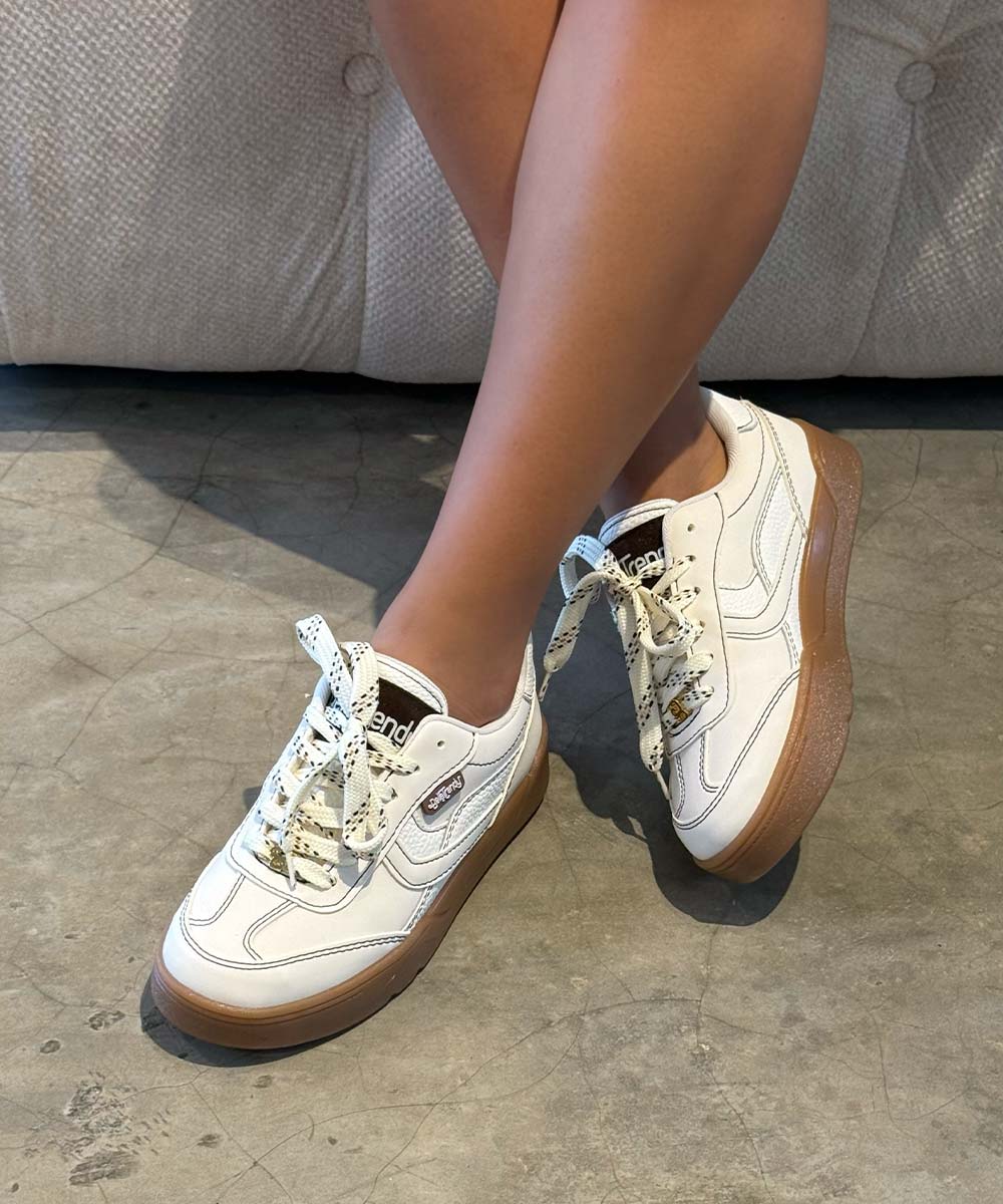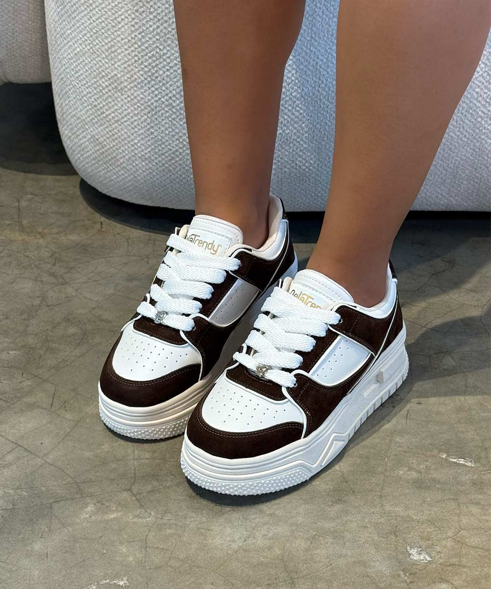 Tenis chunky blanco y mocca para mujer con diseño moderno y suela alta. Comodidad, estilo...