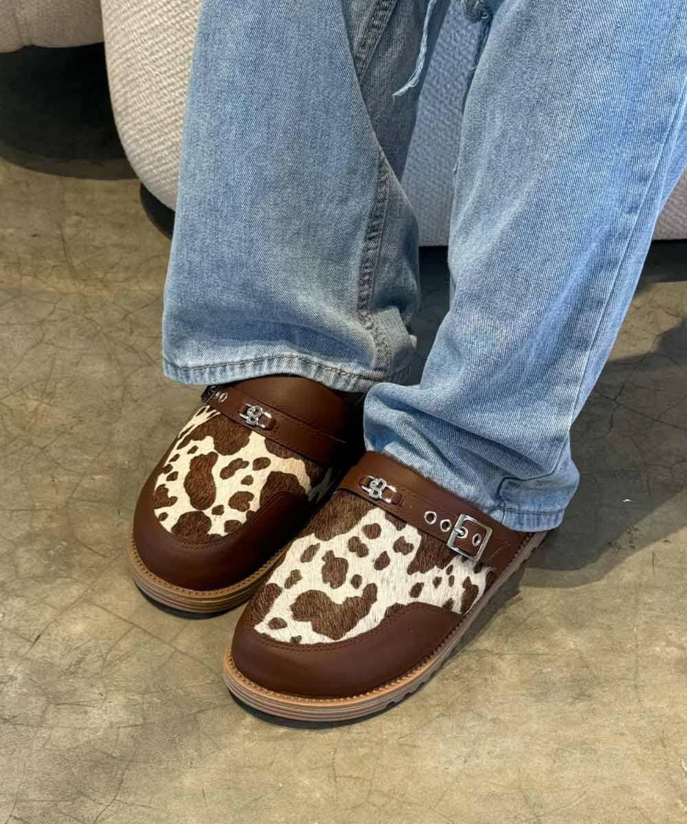 Zuecos mocca para mujer con estampado cow print y diseño moderno. Comodidad, actitud y estilo...